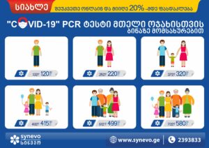 სიახლე! თქვენ შეგიძლიათ შეუკვეთოთ ონლაინ “კოვიდ-19” PCR ტესტი მთელი ოჯახისთვის ბინაზე გამოძახებით. “Covid-19” PCR test;